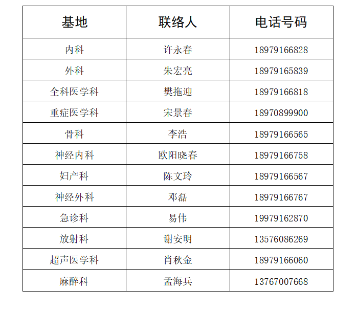 我院12个专业基地面向全国招收,优先录取全科、妇产科、急诊科、麻醉科、重症医学科紧缺专业。